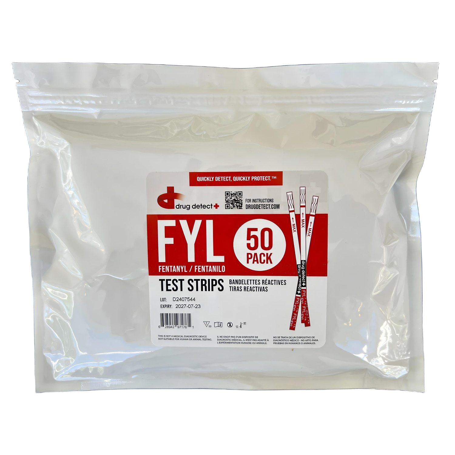 Drug Detect Fentanyl (FYL) Test Strips 50-pack (Individual Pouches)