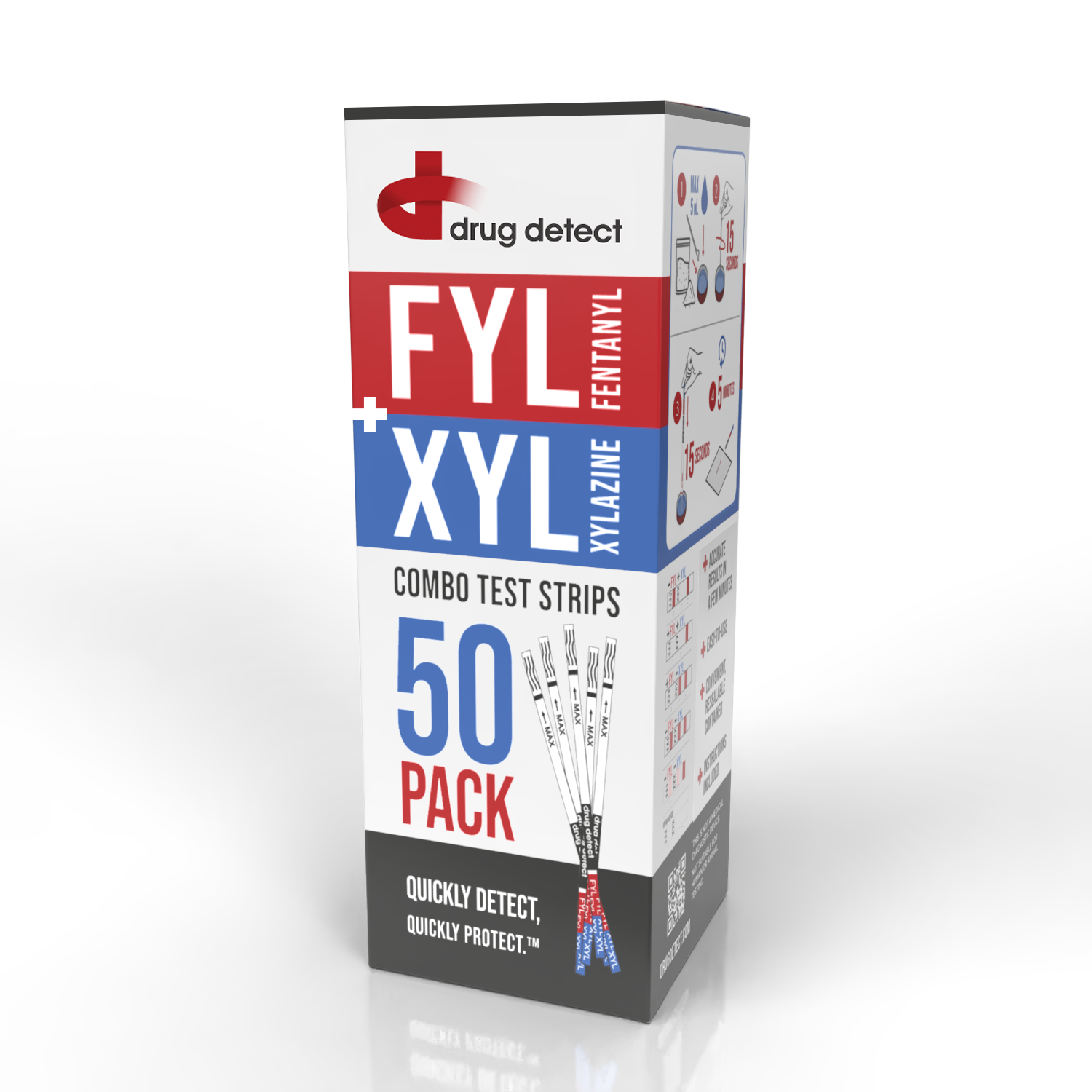 Drug Detect Fentanyl (FYL) + Xylazine (XYL) Combo Test Strips 50-pack (Resealable Container)